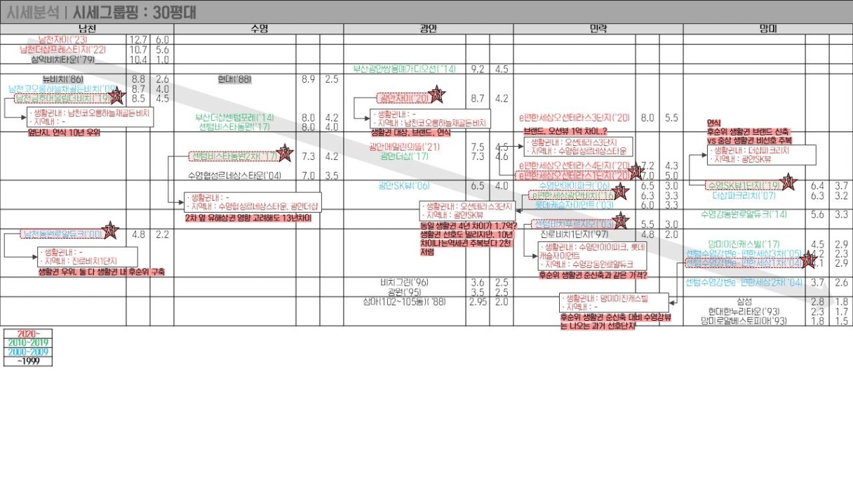 이런 방식으로 시세를 한 판에 정리하면 가격의 저평가 여부를 직관적으로 판단해볼 수 있다는 면에서 효과적입니다.