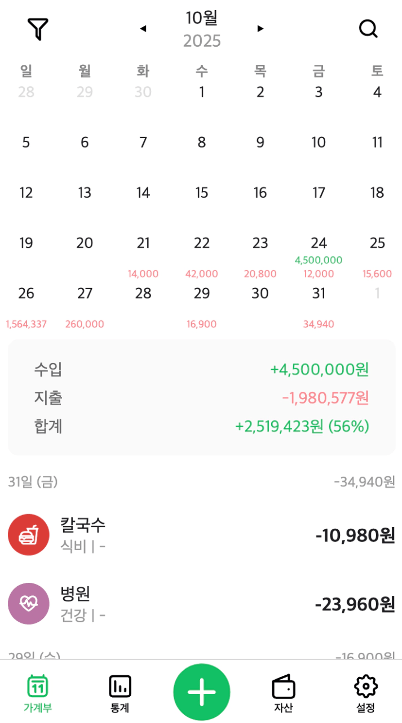그리고 자동 연동이 없어서 직접 입력하는 방식은 분명 번거로울 수 있지만, 저는 오히려 이게 지출 통제에 훨씬 도움이 됐습니다. 입력하는 순간 “내가 오늘 여기 또 돈 썼구나” 하고 체감이 되니까요.