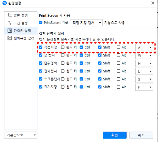 환경설정에 캡쳐 단축키를 설정할 수가 있는데