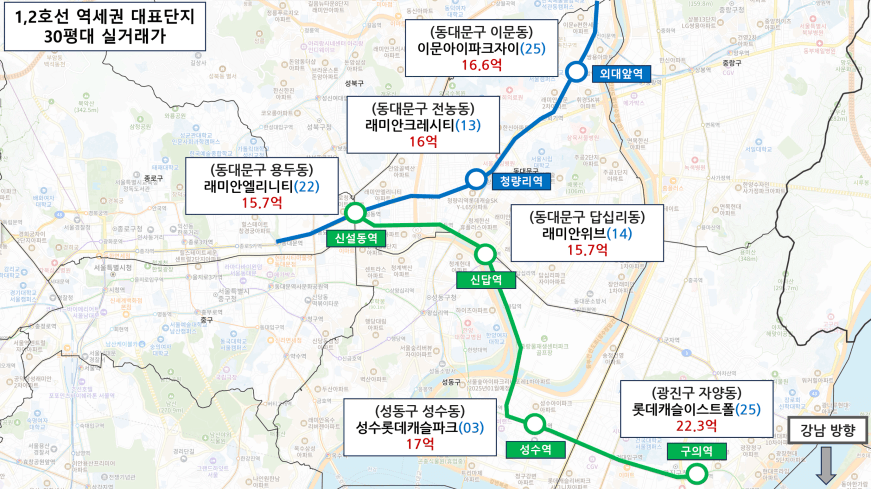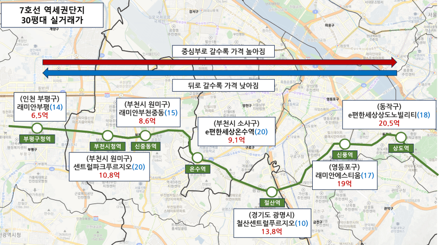 같은 노선 지하철역마다 대표 하는 단지들의