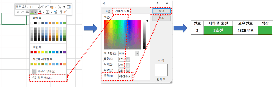 채우기색 - 다른색 - 사용자지정 -