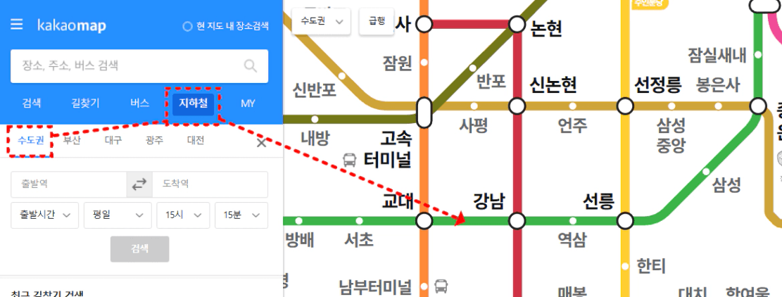 지하철 노선도로 들어가서