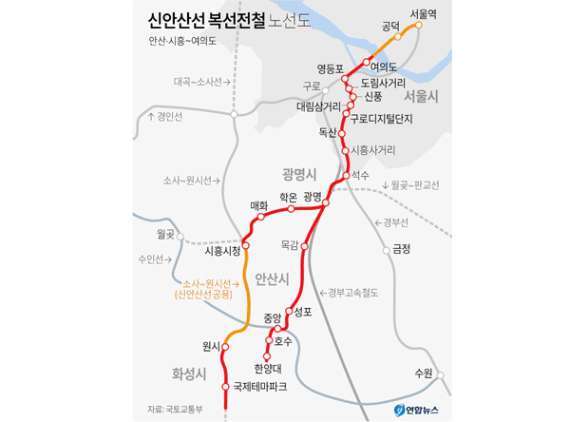 신안산선(27년 초 개통 예정)은 여의도 - 서울역으로 이어지는 노선으로