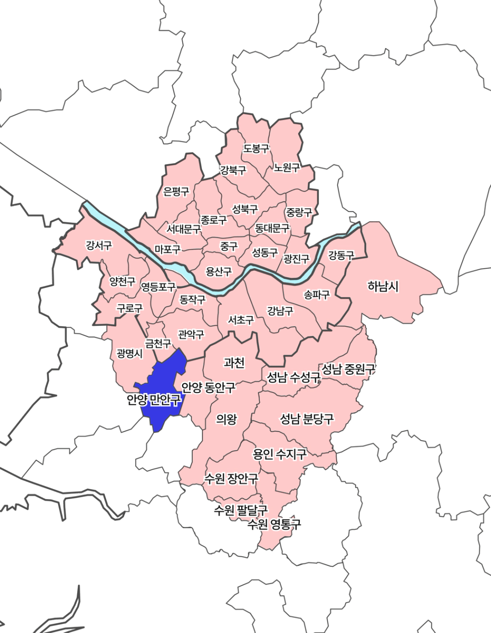 안양시 만안구는 서울 관악구와 금천구, 경기도 안양시 동안구, 광명시, 군포시, 시흥시, 안산시와 인접한데요