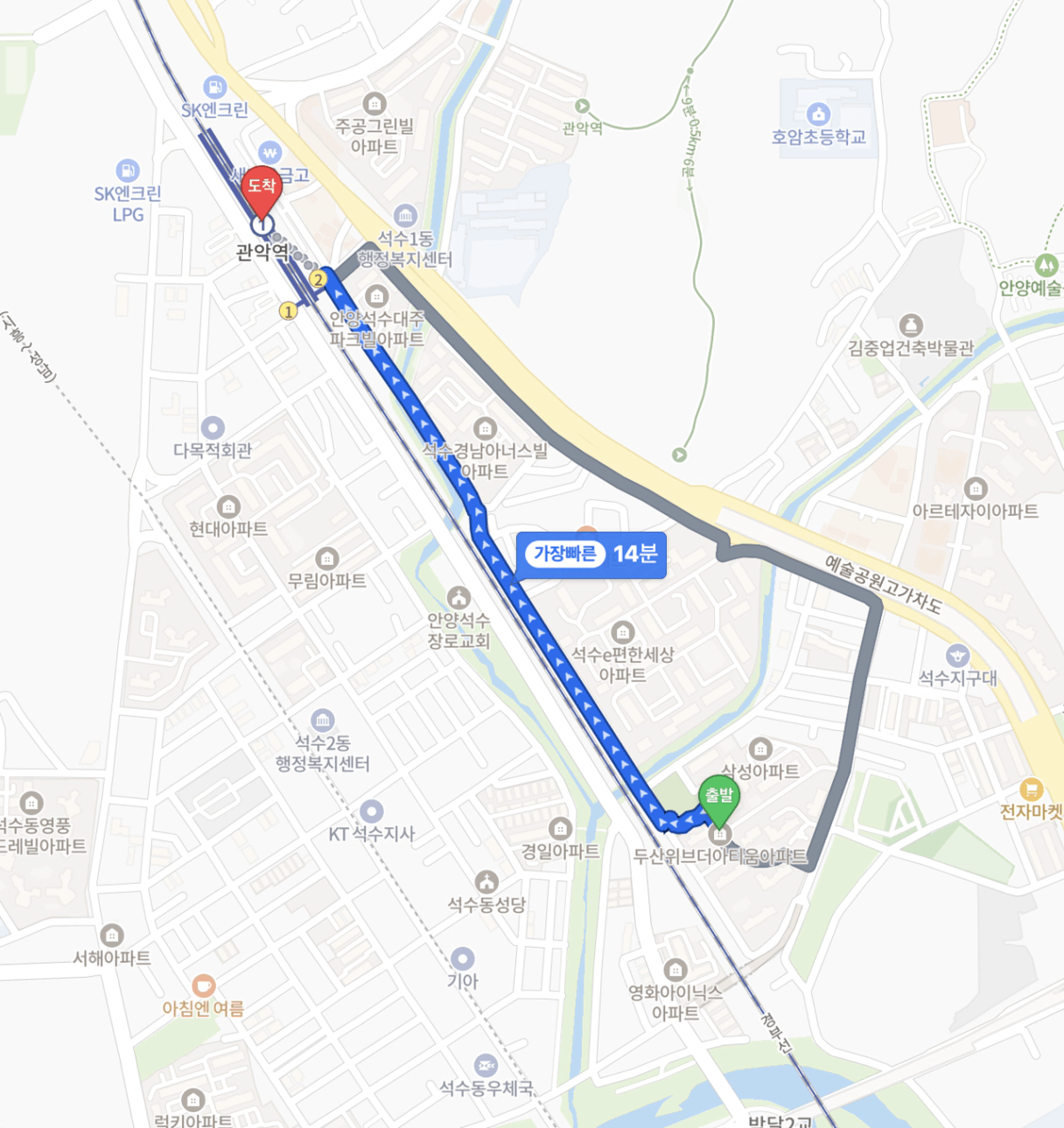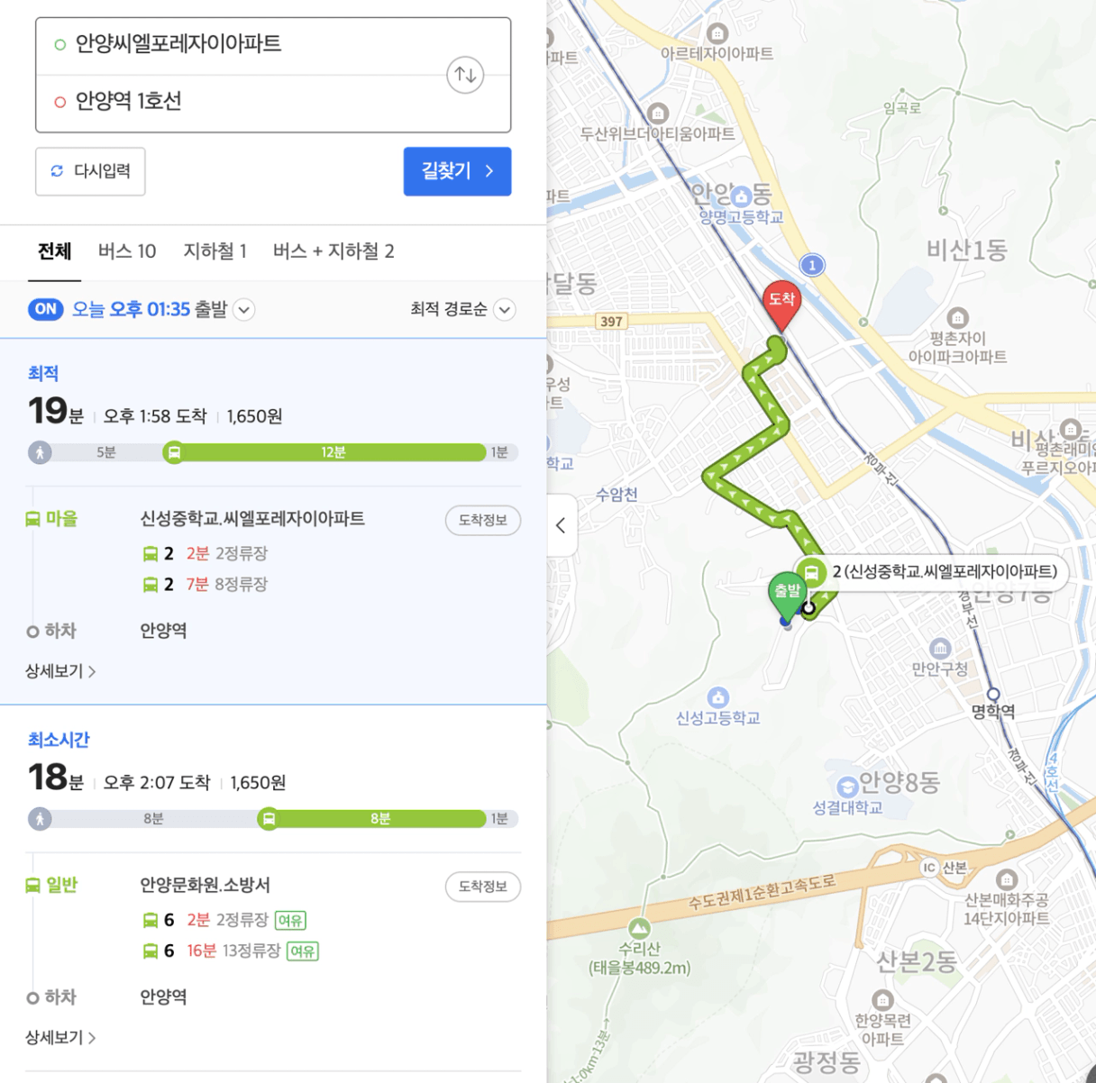 안양역(1호선) - 강남역(2호선) | 52분 |