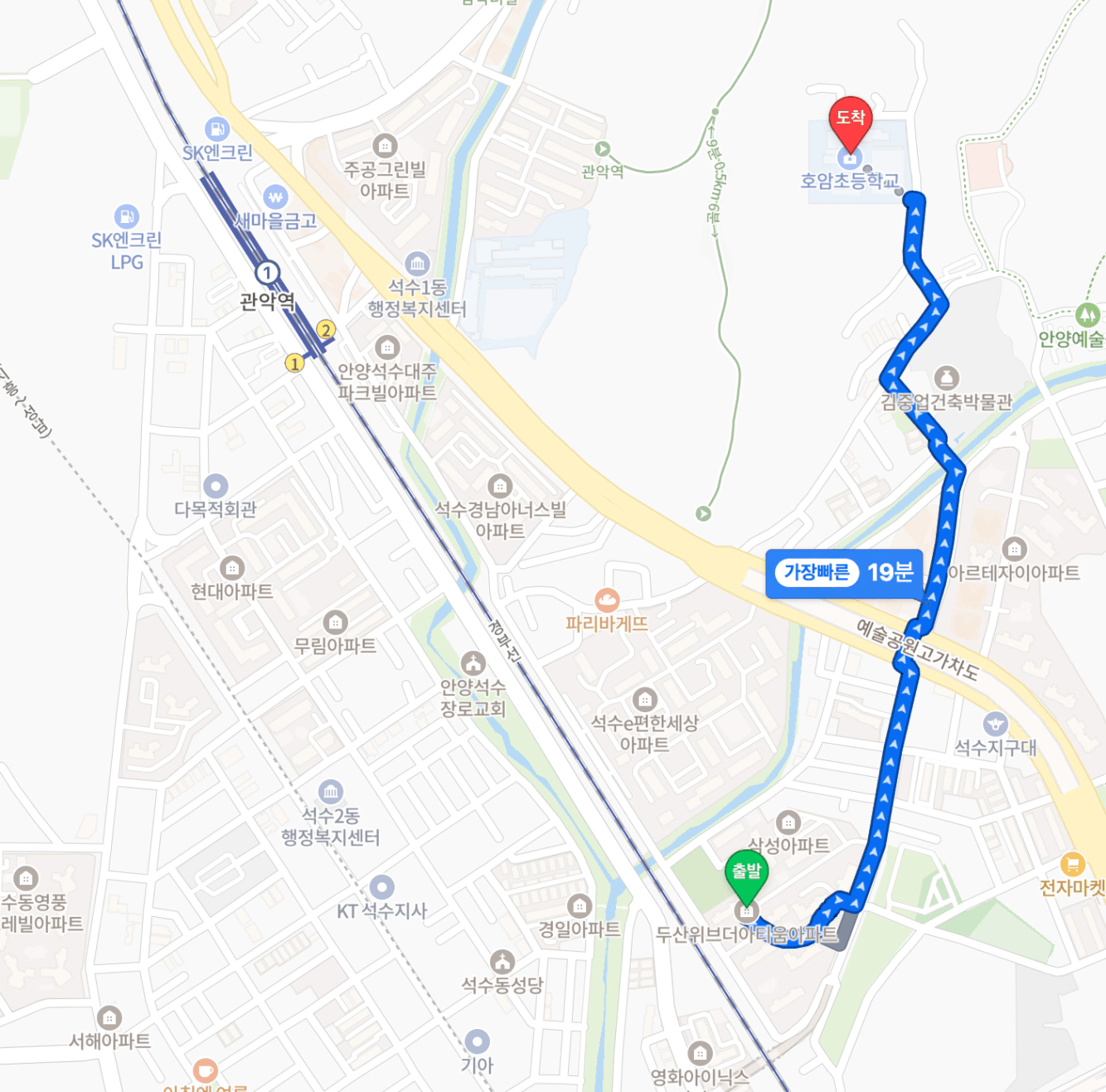 출발지 - 목적지 | 소요 시간 |