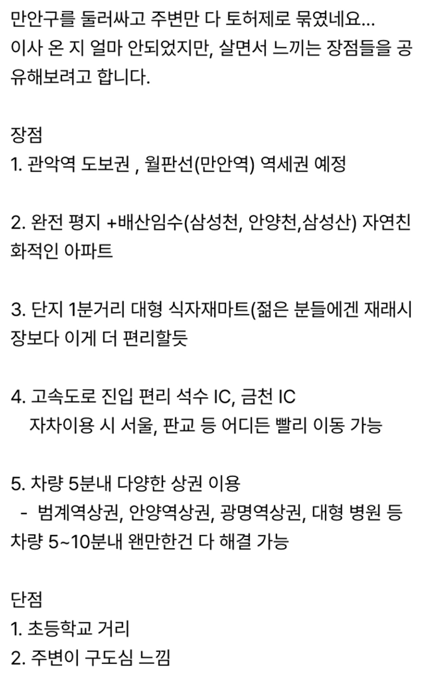 관악역 도보권, 월판선 역세권, 서울 접근성 등을 장점으로 보는 사람들이 많았어요.