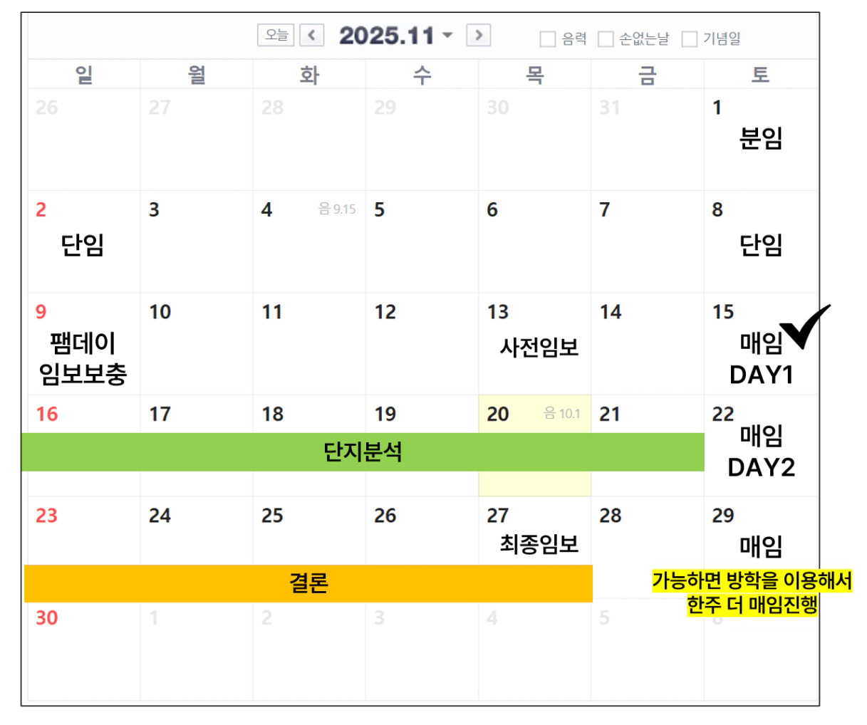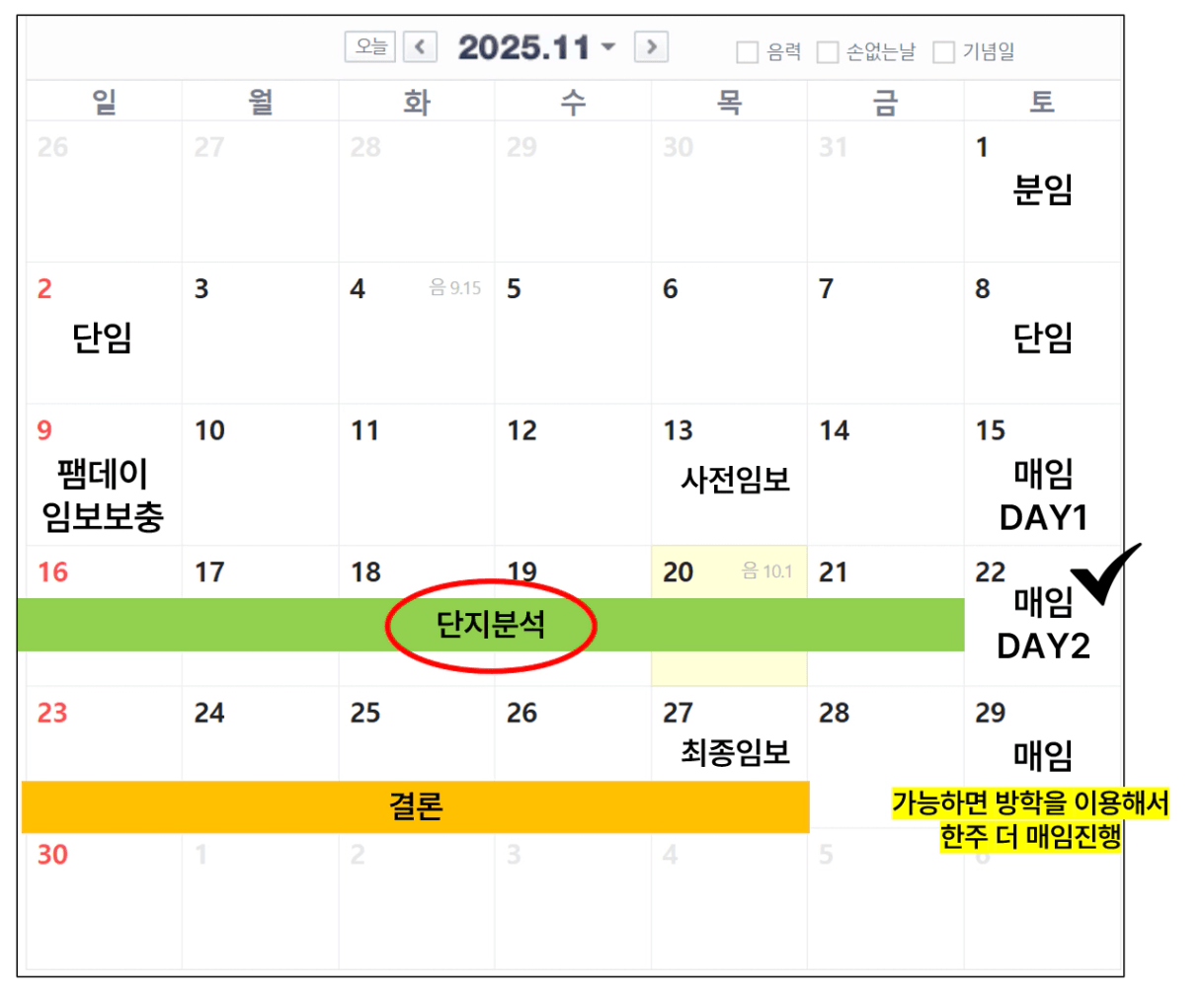 이런 스케쥴로 매임을 2주정도 진행하시는 경우가 많은데요.