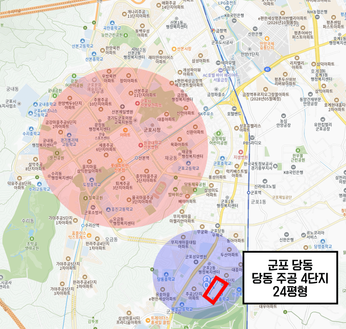 예를 들면, 군포 지역을 보겠습니다.
