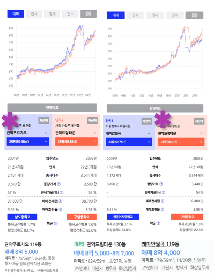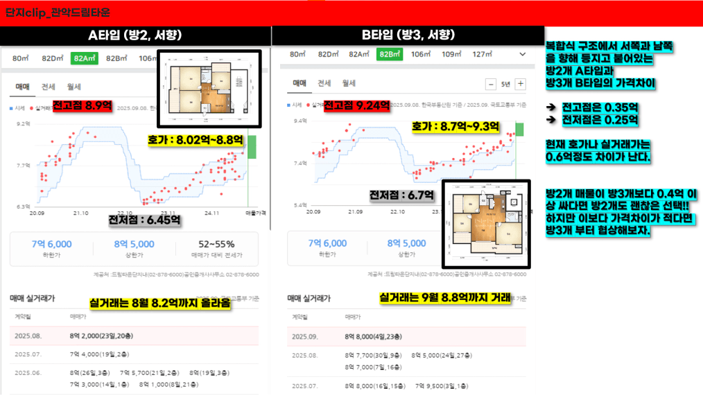 관푸 방3개와 관드타 방2개 호가가 똑같다면?