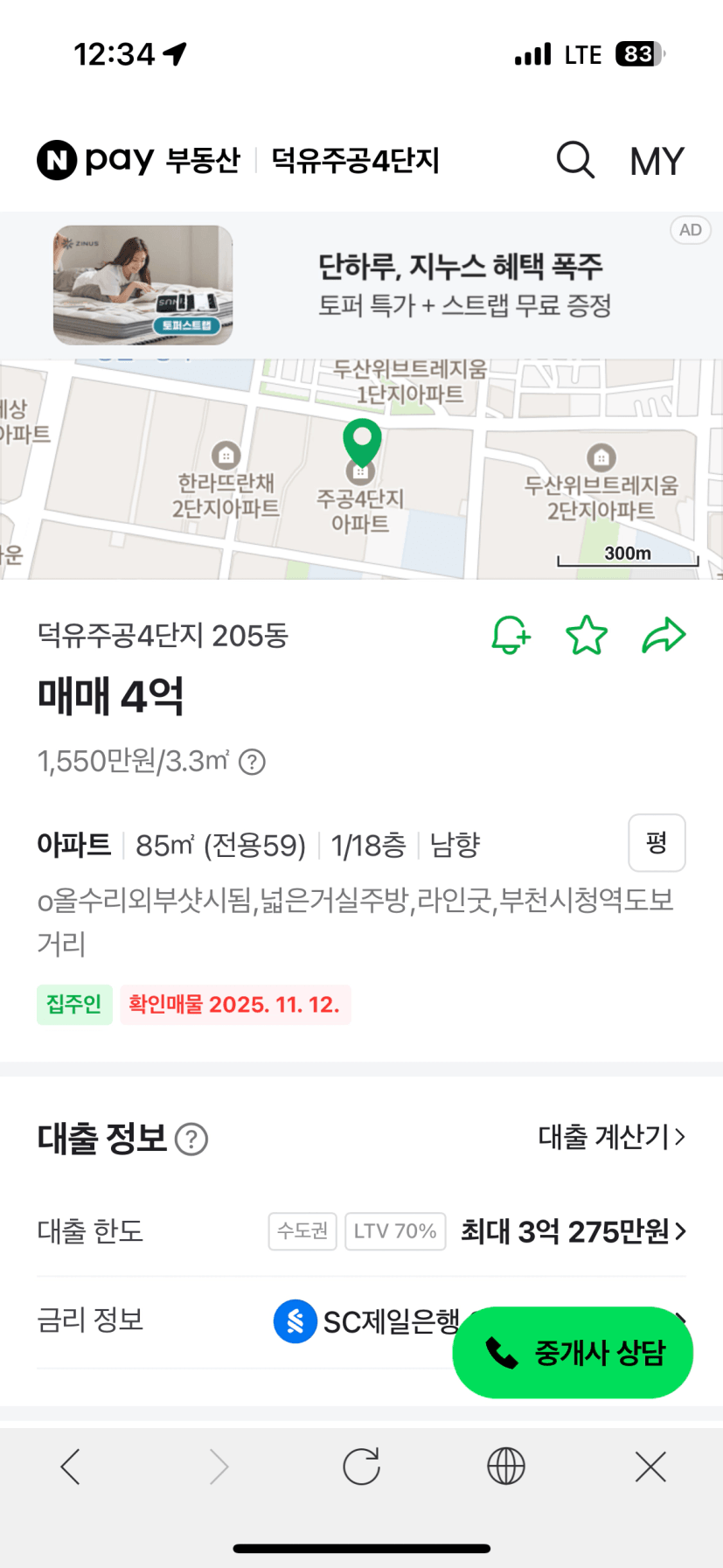 카톡방에 보내뒀던 매물을 보고 전화를 겁니다.