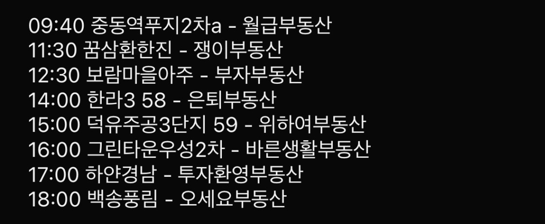 공지로 시간대, 단지, 부동산을 적어둡니다.