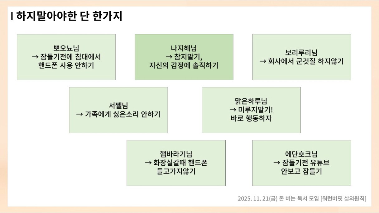 이번 독모에서는 뽀리더님이 [하지말아야 할 한가지]를 정해보자고 해주셔서