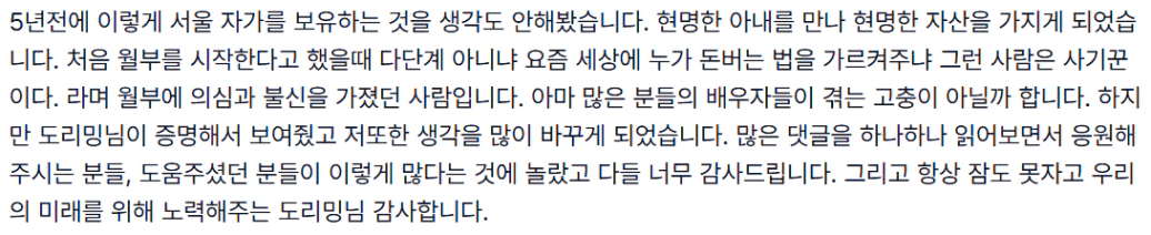 ‘아… 투자를 안 하면 대안이 없구나’ 라는 것을 느낍니다