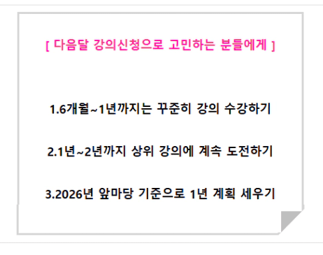 # 1년 ~ 2년 상위 강의를 한번이라도 듣기 위해 노력해보세요