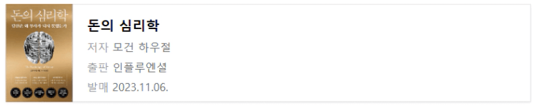 책 제목(책제목 + 저자) : 돈의 심리학 / 모건 하우절
