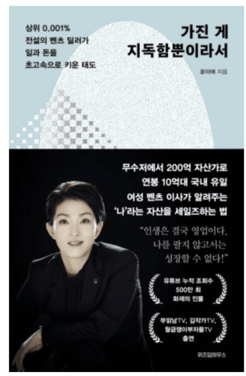 이 책을 다시 읽을 때마다 이사님 정말 대단하시다는 생각이 들 수 밖에 없었다. 지금의 성공적인 결과에 대해서도 입이 떡 벌어지지만, 그와 반대로 워낙에 어려웠던 과거 시절을 알고나면 더욱 그런 존경심이 든다. 우리는 주로 우리가 갖지 못한 것에 대한 불평을 우선적으로 털어 놓는다. 하지만 윤미애이사님도, 연관지어 읽고 싶은 책인 '인생에 변명하지 마라' 저자도, 비슷한 느낌을 주시는 켈리최 회장님도, 신사임당도 모두 무수저 혹은 흙수저에서부터 일궈낸 오늘을 보여준다. 물론 많이 가지고 있으면 고생을 덜 해도 되지만, 이미 많이 갖고있지 않다고 해서 거기에 좌절하고 안주할 것이 아니라 그럼에도 불구하고 내가 할 수 있는 혼을 다 쏟으면 결국은 반전을 일으킬 수 있다는 것을 살아있는 모습 그 자체로 보여주시는 분이다. 오늘도 오늘 하루에 더 열심히 살아야겠다. 꼭 한번 만나뵙고 싶은 분이다.