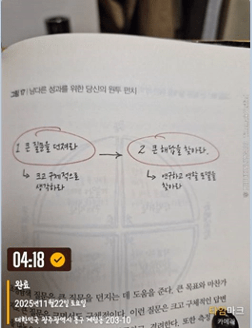 자신의 초점을 더욱 좁힐수 있는 통찰을 얻고 각자가 원하는 탁월한 성과를 이루어 내길 바란다.