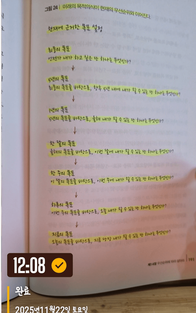 핵심 키워드 3가지 뽑아보기 : #우선순위 #단하나의일 #시간확보
