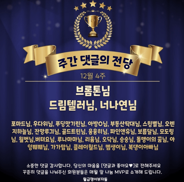 그리고 댓글의 전당에 오를 수 있는 기회까지