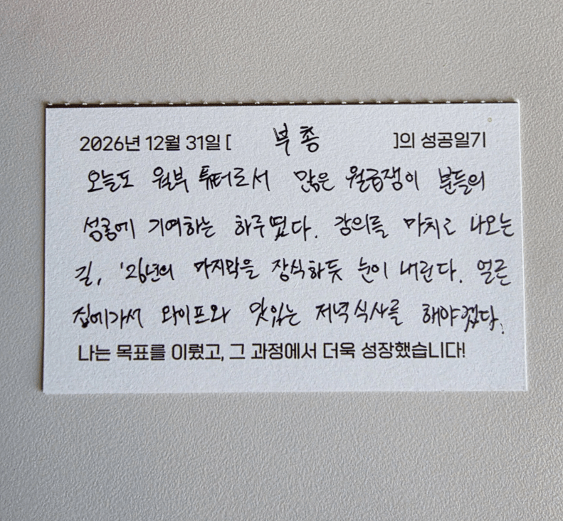 적었던 목표 꼭 이루어서 내년에 다시 찾아올께요!!