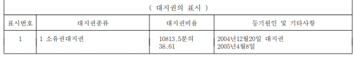 이런 식으로 두 개의 면적이 나오는데 이 중 앞에 있는 38.61㎡가 대지 지분이므로 그 값을 적어주시면 됩니다.