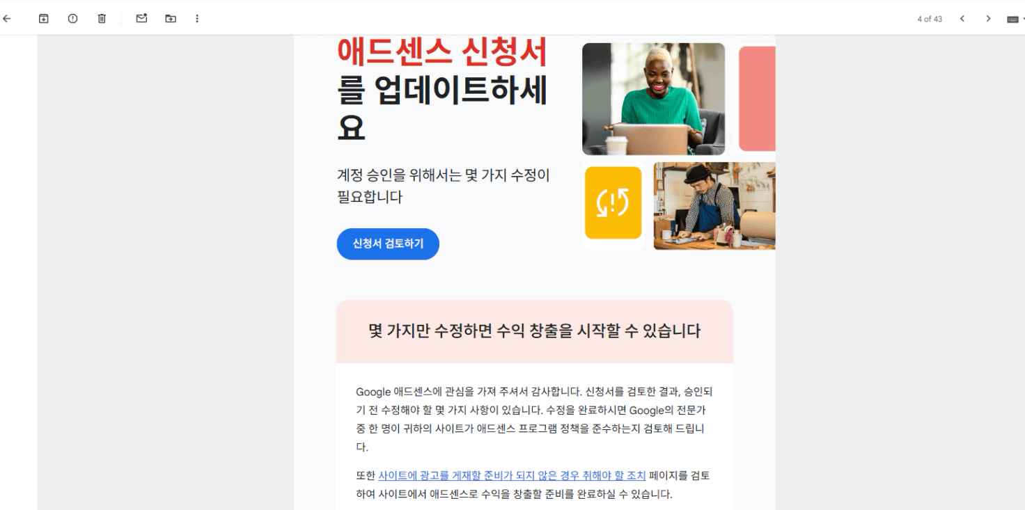 그리고 구글 이메일로 아래와 같이 메일이 와서 열어보니 중복애드센스 계정이 있다고 나오네요