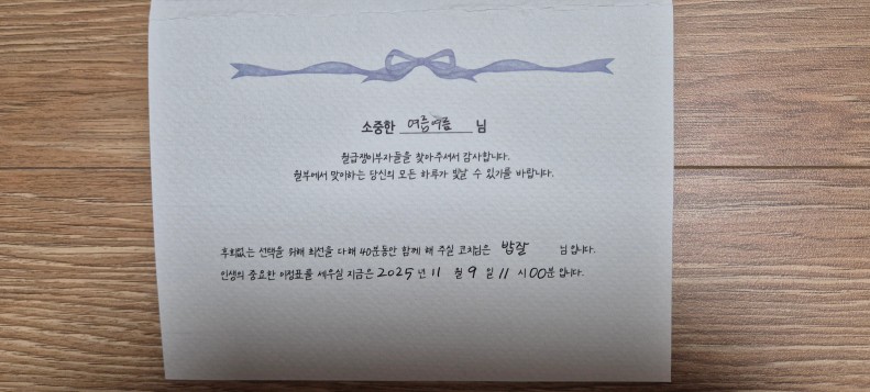 그순간의 떨림과 감동을 마음속에 꼭 간직하겠습니다.