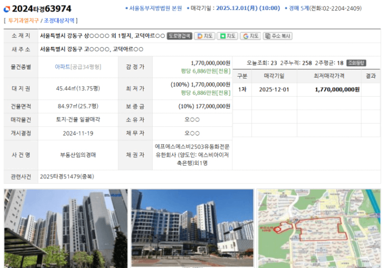 ✔ 입찰일: 2025년 12월 1일(월) 오전, 서울동부지방법원 7계