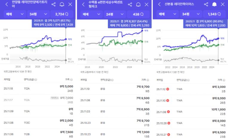 [비규제 지역의 아직 비싸지 않은 구간의 단지들]