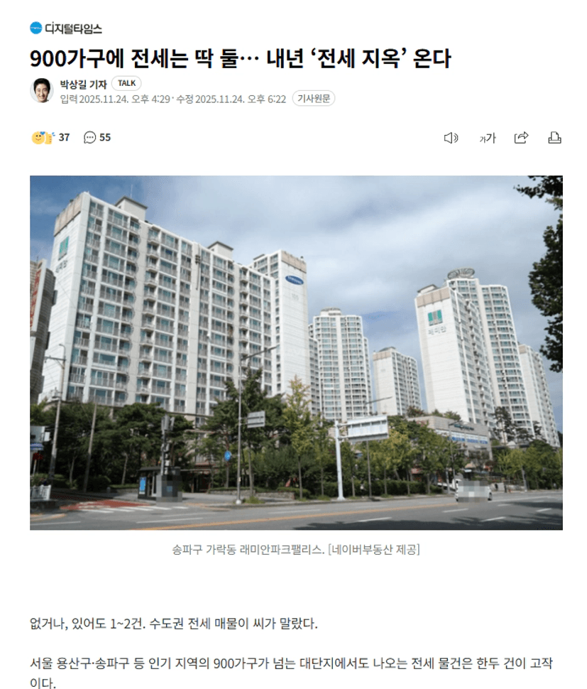 전국 부동산의 가장 큰 포션을 차지하는 서울만 보더라도 전세가 씨가 말랐다는 기사가 있습니다