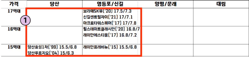최근 급등한 당산/신길뉴타운에서는 실거래 대비 1억이상 비싼 호가의 매물을 급하게 잡지 않도록 주의가 필요해보입니다.