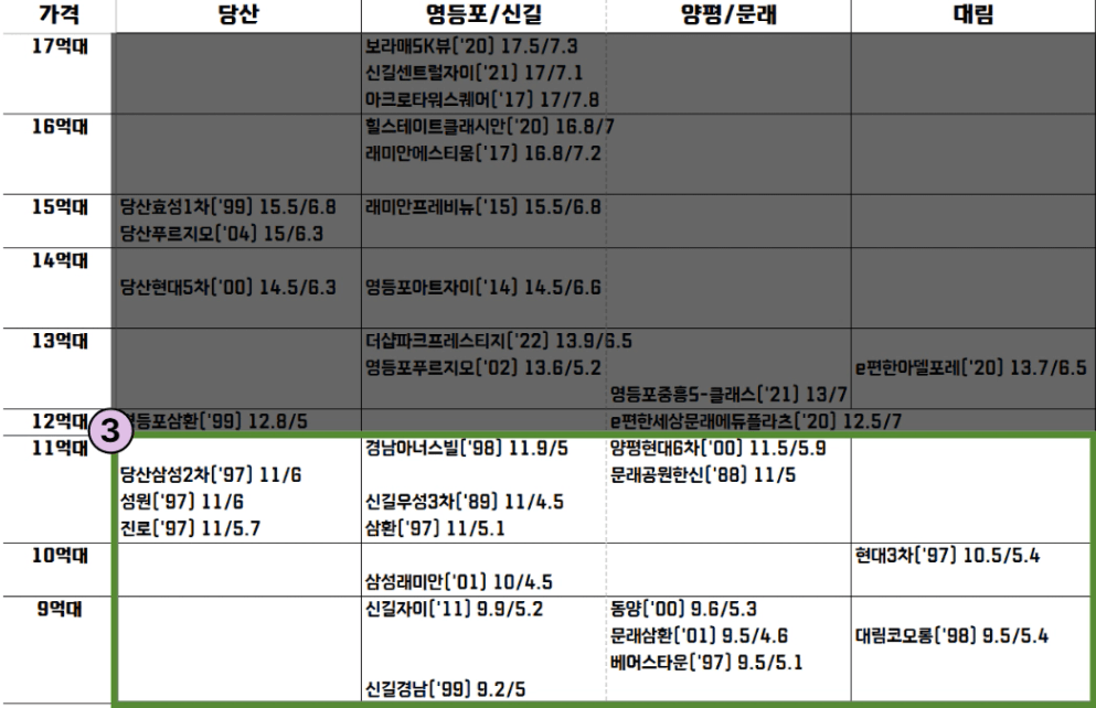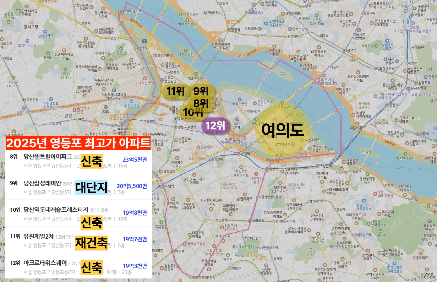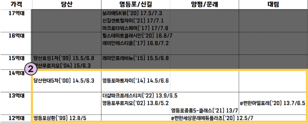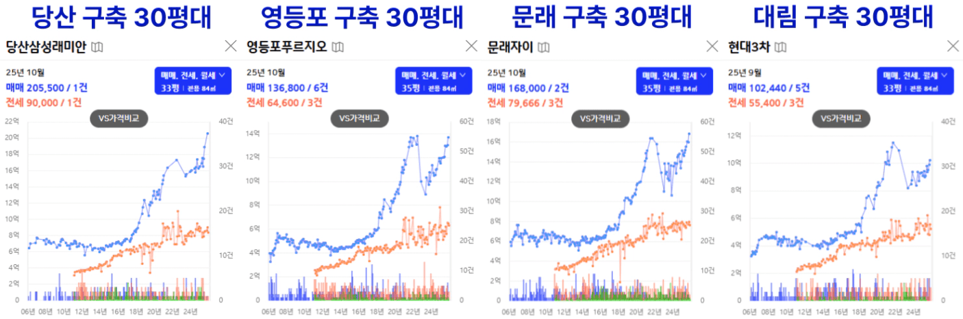 당산 생활권과 신길 뉴타운은 전고점(2021년 가격)을 뚫으며 가파르게 급등했고