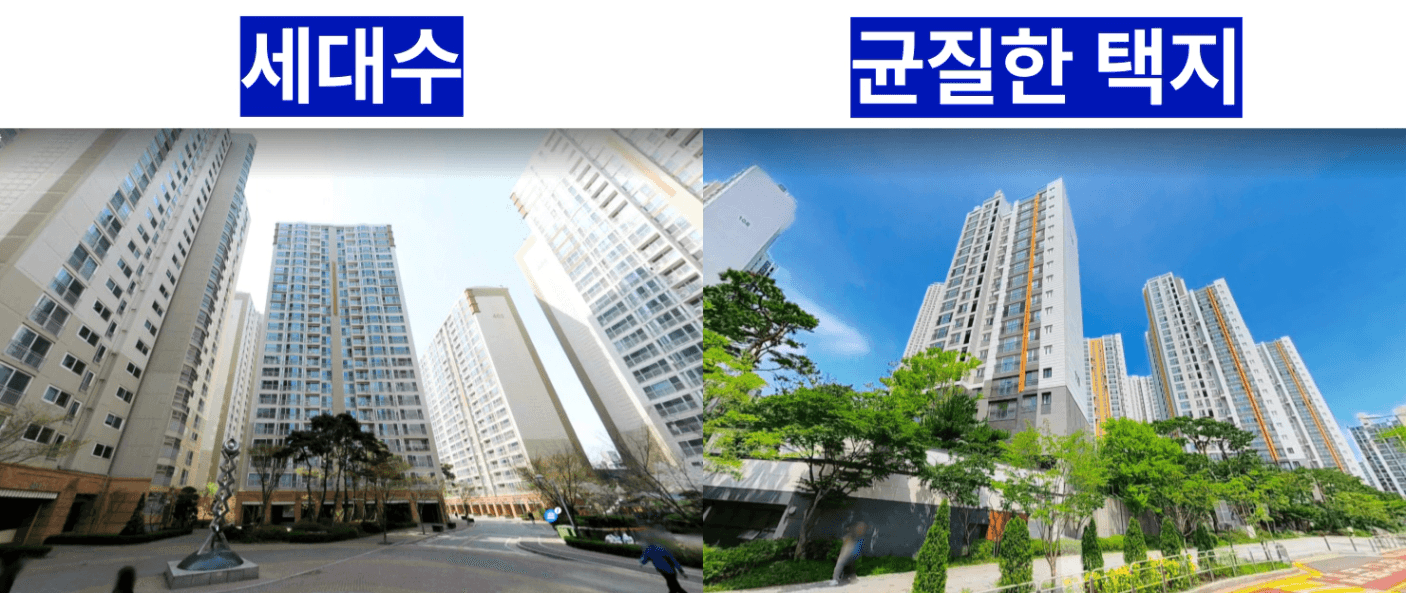 살기에 쾌적한 세대수가 크거나 균질한 택지