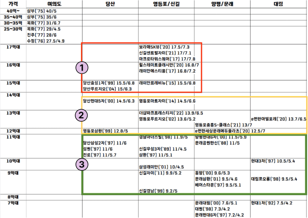영등포푸르지오 : 장점) 대단지, 단점) 교통, 비균질, 구축