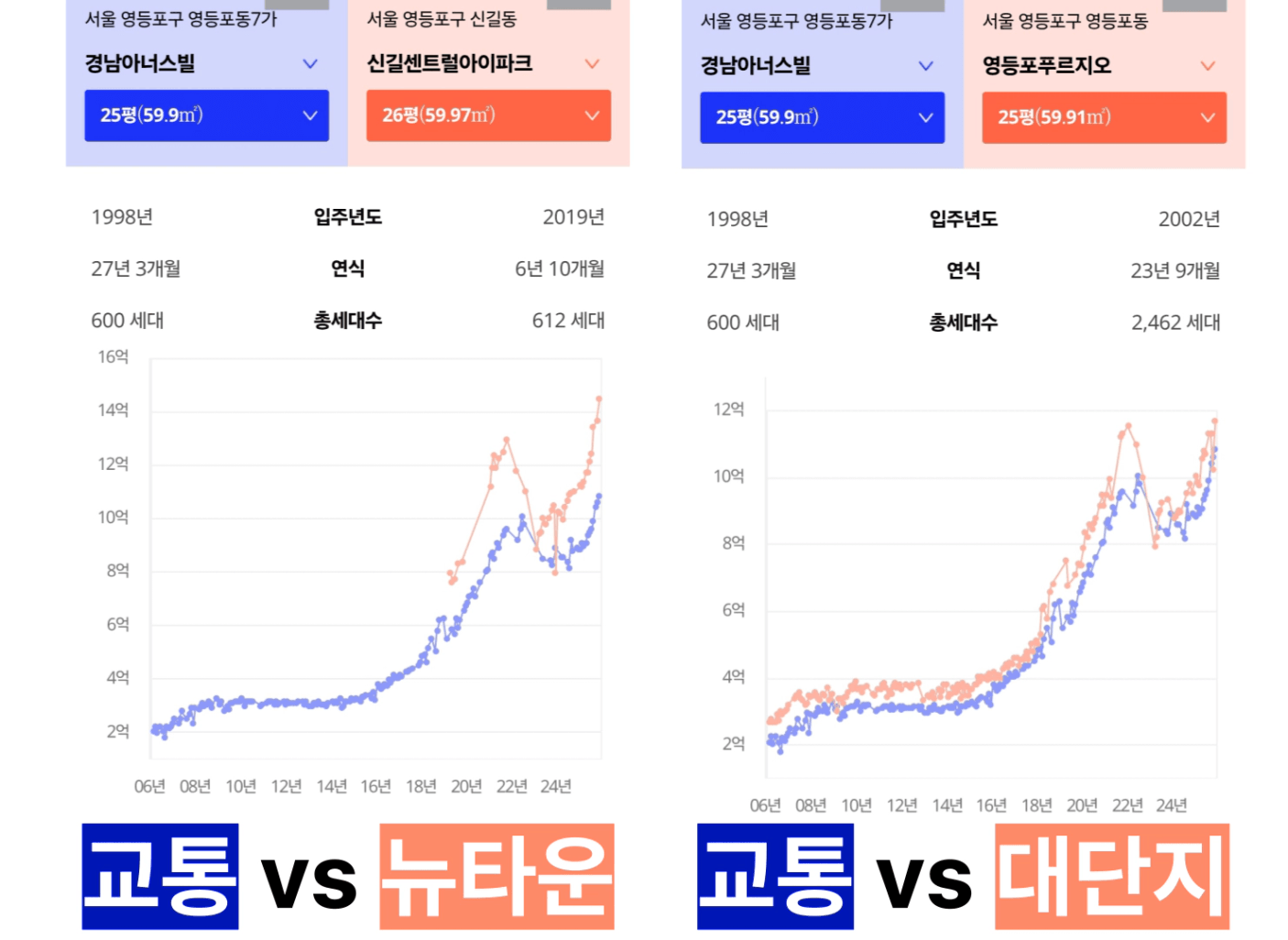 역에서 살짝 멀더라도 신축 뉴타운이 확실히 낫지만