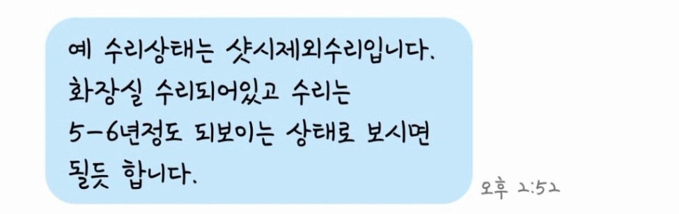 아파트로 달려가면서 아파트 수리 상태도 물어봤습니다 수리한지 5-6년 되었다고 합니다. 집 상태 괜찮을거 같은데.. 실제로 가서 보고 괜찮으면 바로 계약해야겠다 싶었습니다.