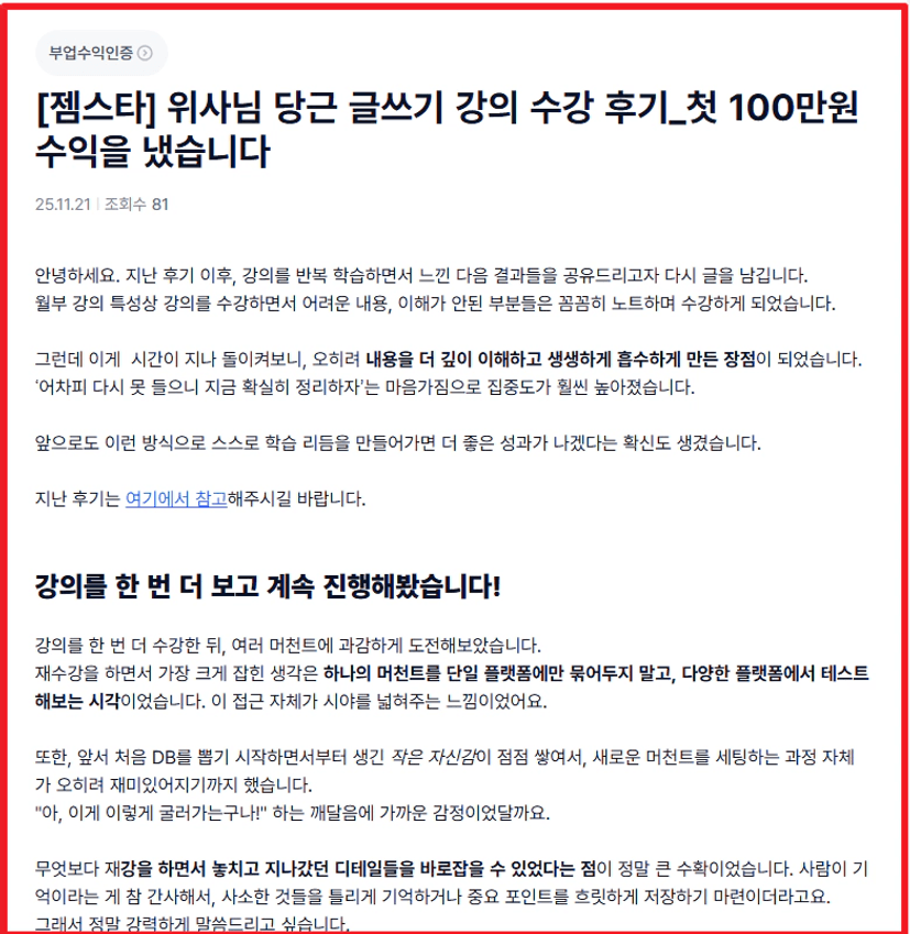 수익인증 글에도 수강 TIP이 많아서 정리를 해드리자면,