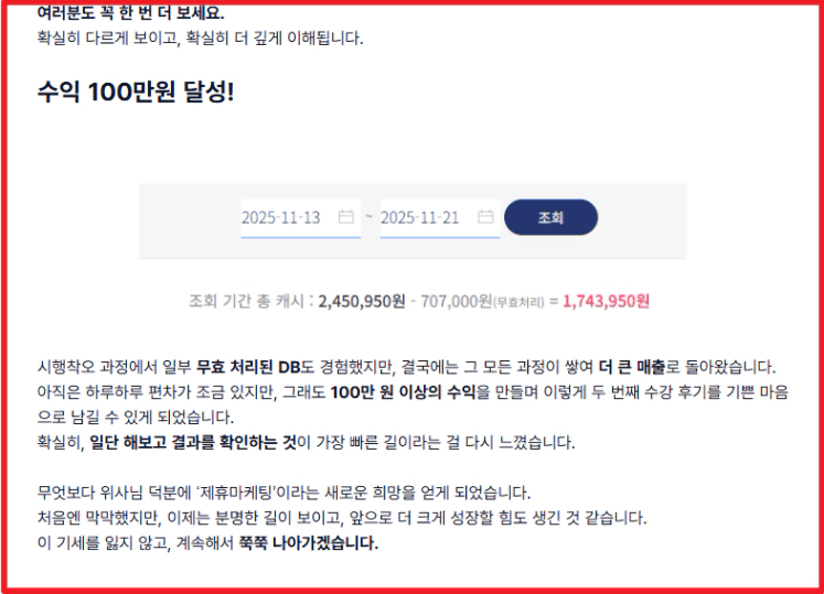 특히, 광고로 수익내는 ‘제휴마케팅’ 특성 상 결과를 빠르게 확인가능하다는 점이 굉장히 장점인데요. 피드백이 굉장히 빠른 수익화 방식이기 때문에 DB가 나오기 시작한다면 흥미롭게 하실 수 있는 것 같습니다. 마치 ‘게임’처럼 느껴지기도 하기 때문입니다.