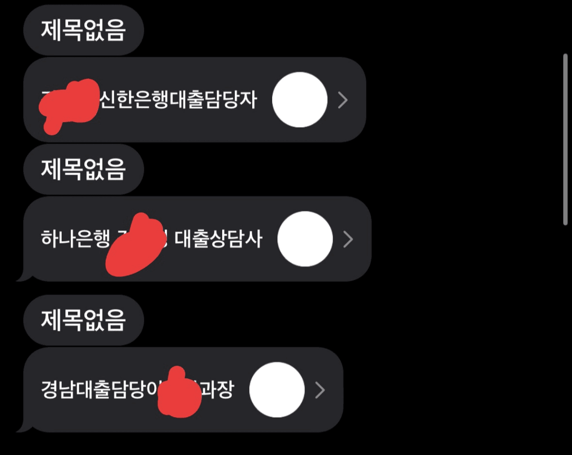 대출 상담사 분들의 전화번호를 여쭤봤습니다.