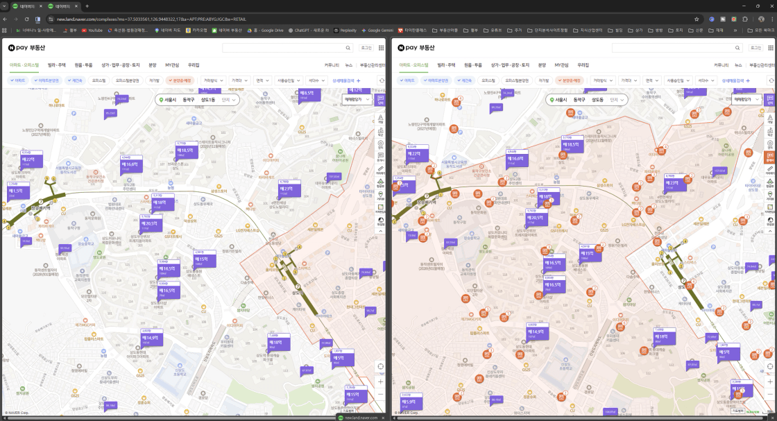 창의 2분할 왼쪽 매물리스트, 오른쪽 부동산 리스트!!를 기존에는 창을 각각 띄워서 좌,우 배치를 했었는데요.