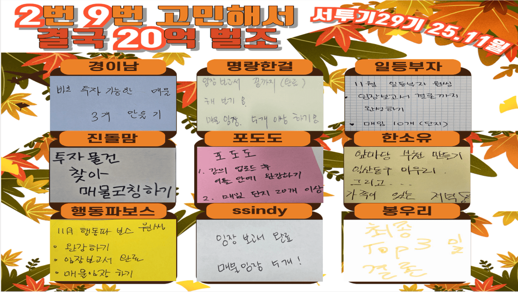 또 임장과 임장보고서를 비교평가를 통해 투자 의사결정으로 연결짓는 과정을 실제 사례로 보여주신 점이 도움이 되었습니다. 결론까지 도달하는 사고의 흐름을 배울 수 있어 좋았고 머리에 구조가 잡히는 느낌이었습니다.