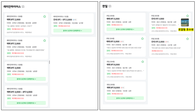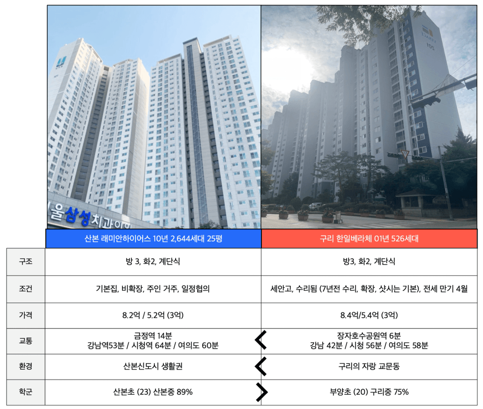 단지 매물을 보고 왔다면 두 단지중 어떤 단지가 좋은지 비교해보는건데요