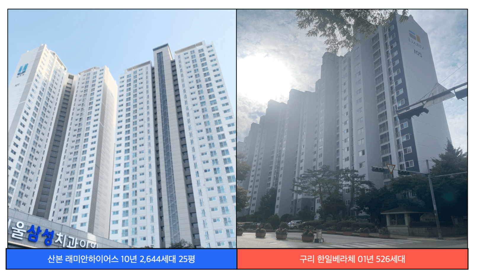 교통, 환경이 좋은 구리가 조금 더 선호되는 지역일 수 있으니,