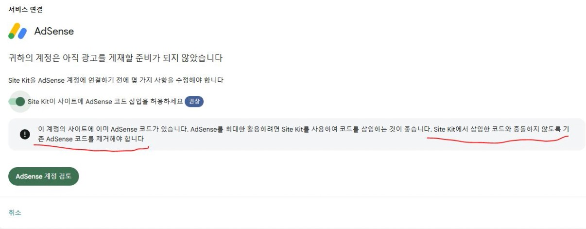 사이트킷 코드를 복사후 Header and Footers 에 넣은 이후 이렇게 계속 메세지가 뜨더라구요