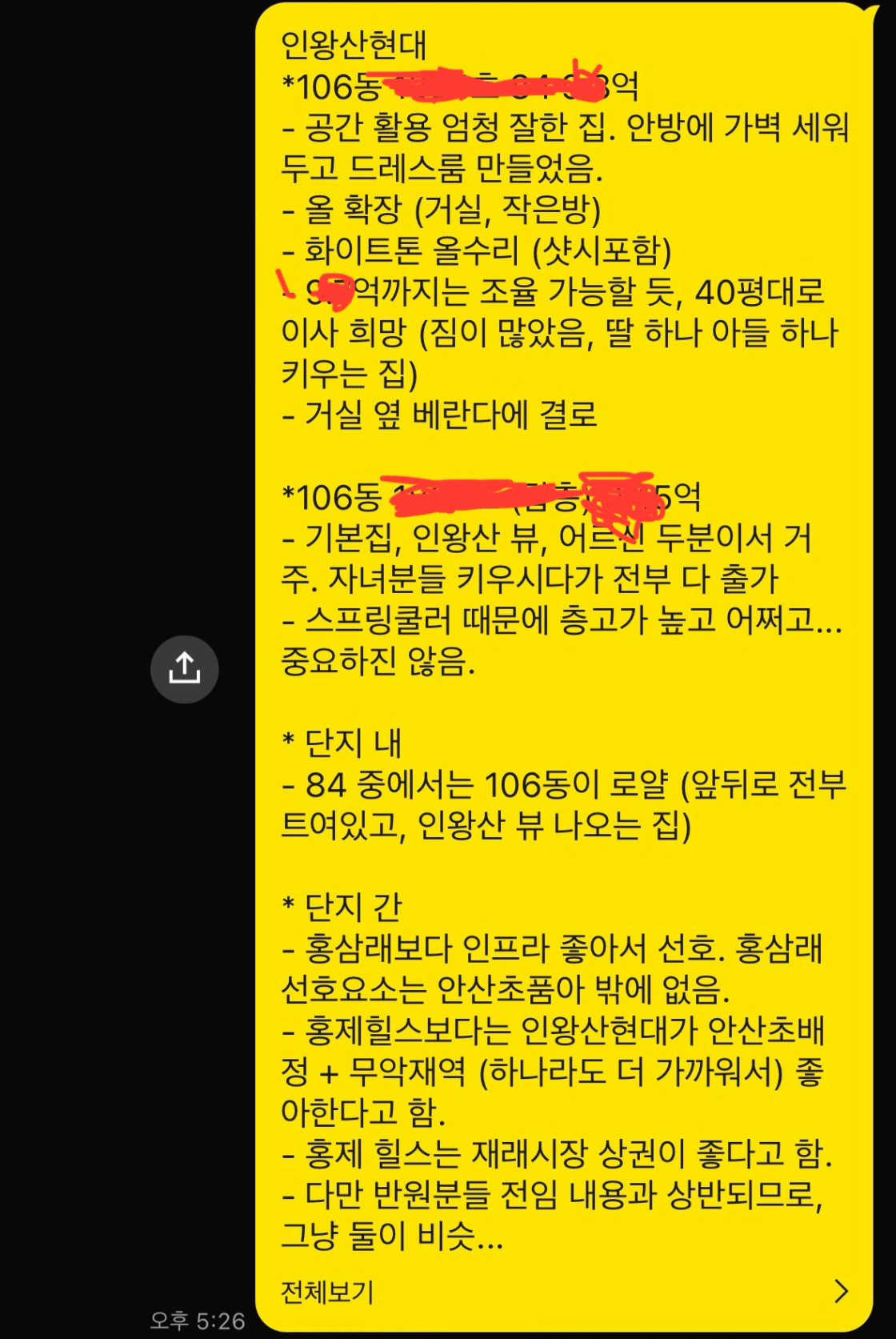- 홍제힐스보다는 인왕산현대가 안산초배정 + 무악재역 (하나라도 더 가까워서) 좋아한다고 함.