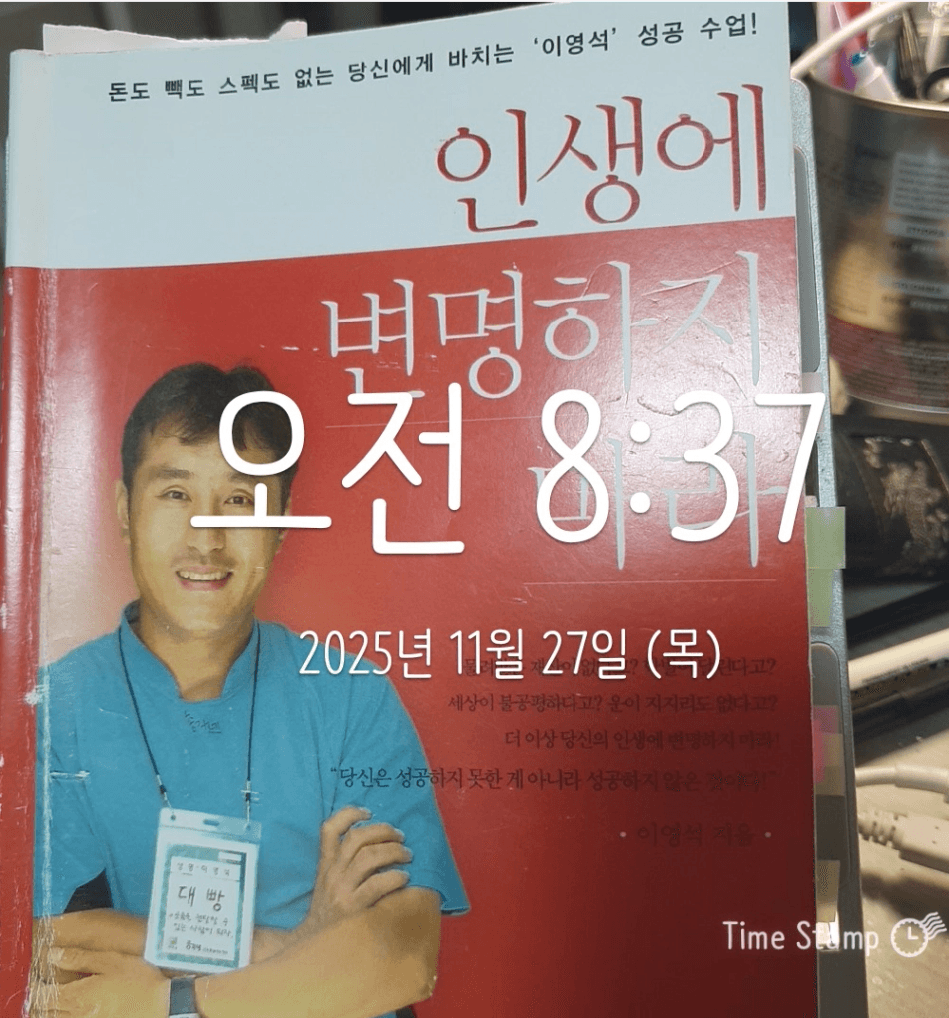 | 저자 및 출판사 : 이영석, 쌤앤파커스 | 읽은 날짜 : 11.24-26 | 도서점수 (10점 만점) : 10점 |