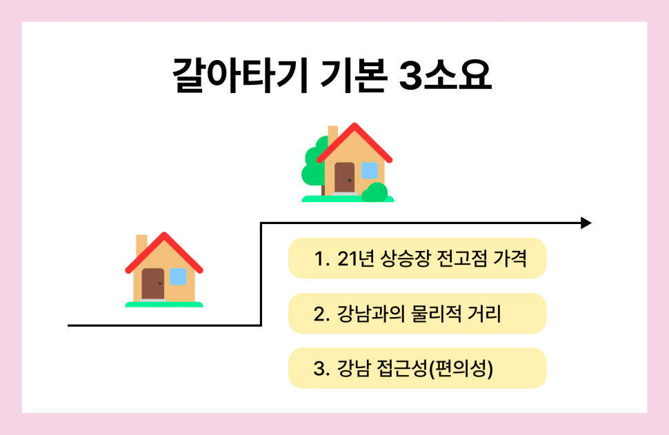 둘째로는 강남과의 물리적 거리예요. 직장 출퇴근이 가까운 3대 업무지구(강남, 시청, 여의도), 특히 그 중에서도 강남에 얼마나 가까운지가 중요해요. 강남에서 15km 떨어진 곳보다 10km 떨어진 곳이 위치가 좋으니까 뭘해도 장점도, 수요도 있죠.