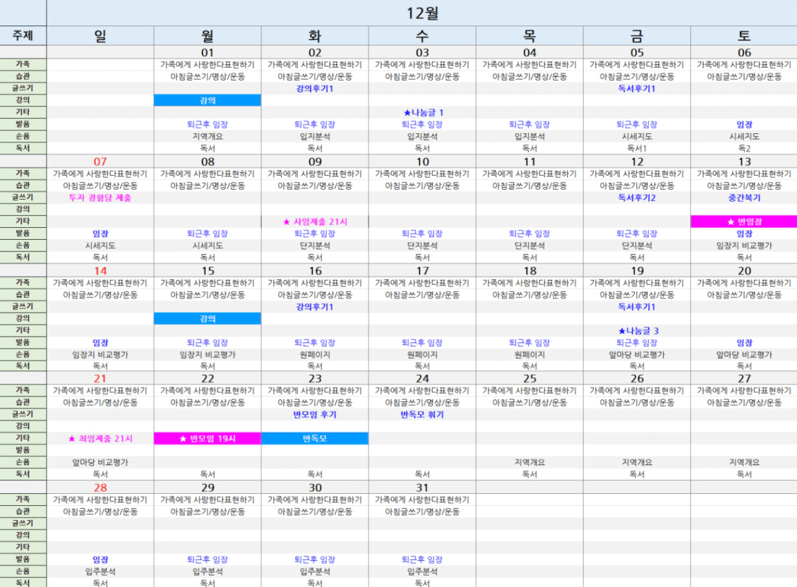 12월도 목표 달성 완수 하고 가을학기 후회 없이 해내고 성장 성취감을 느껴 보겠습니다.