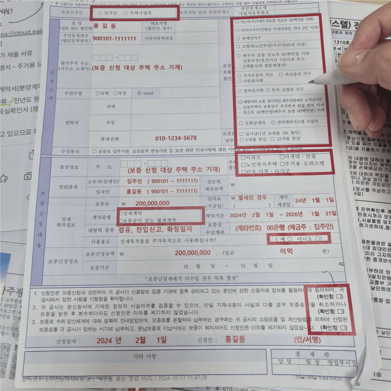 HUG에서 가입에 필요한 많은 서류를 작성했고(꽤많아요)
